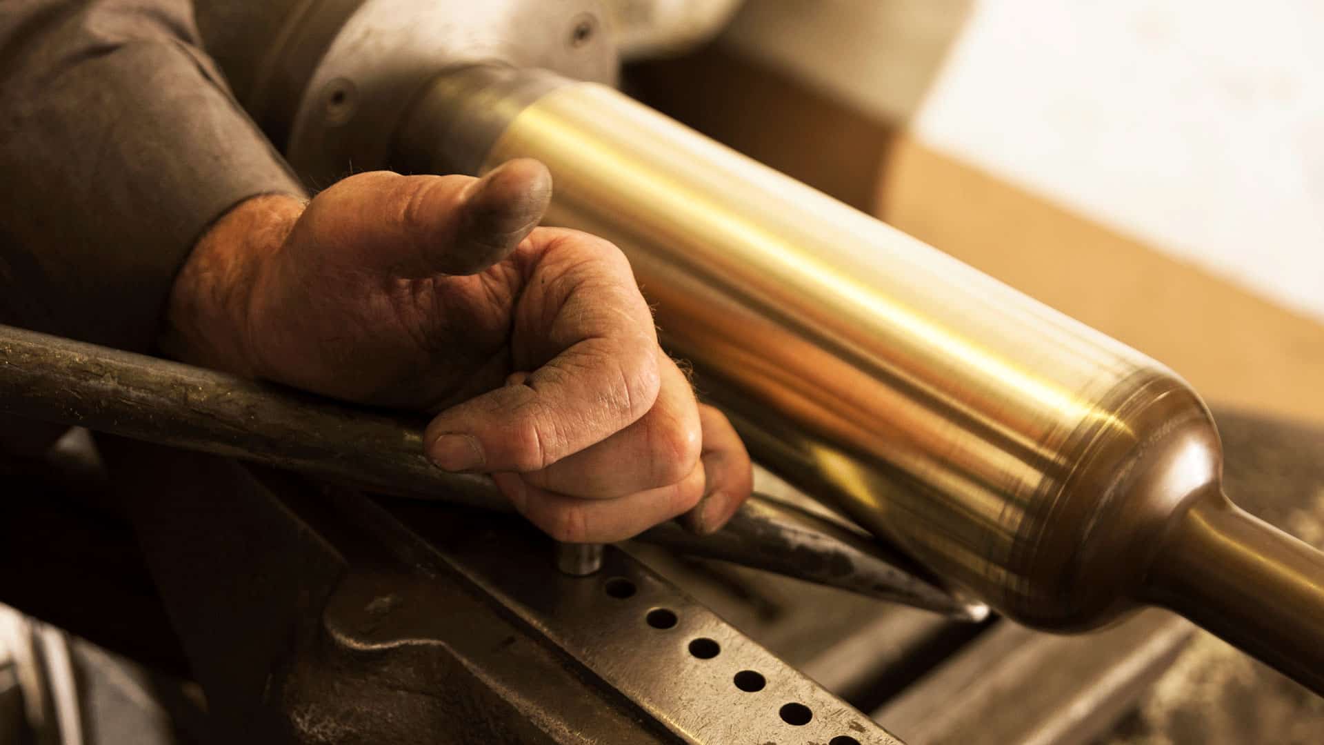 Once we have the right cylinder, our craftsmen employ hand-spinning techniques